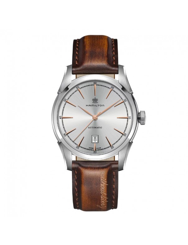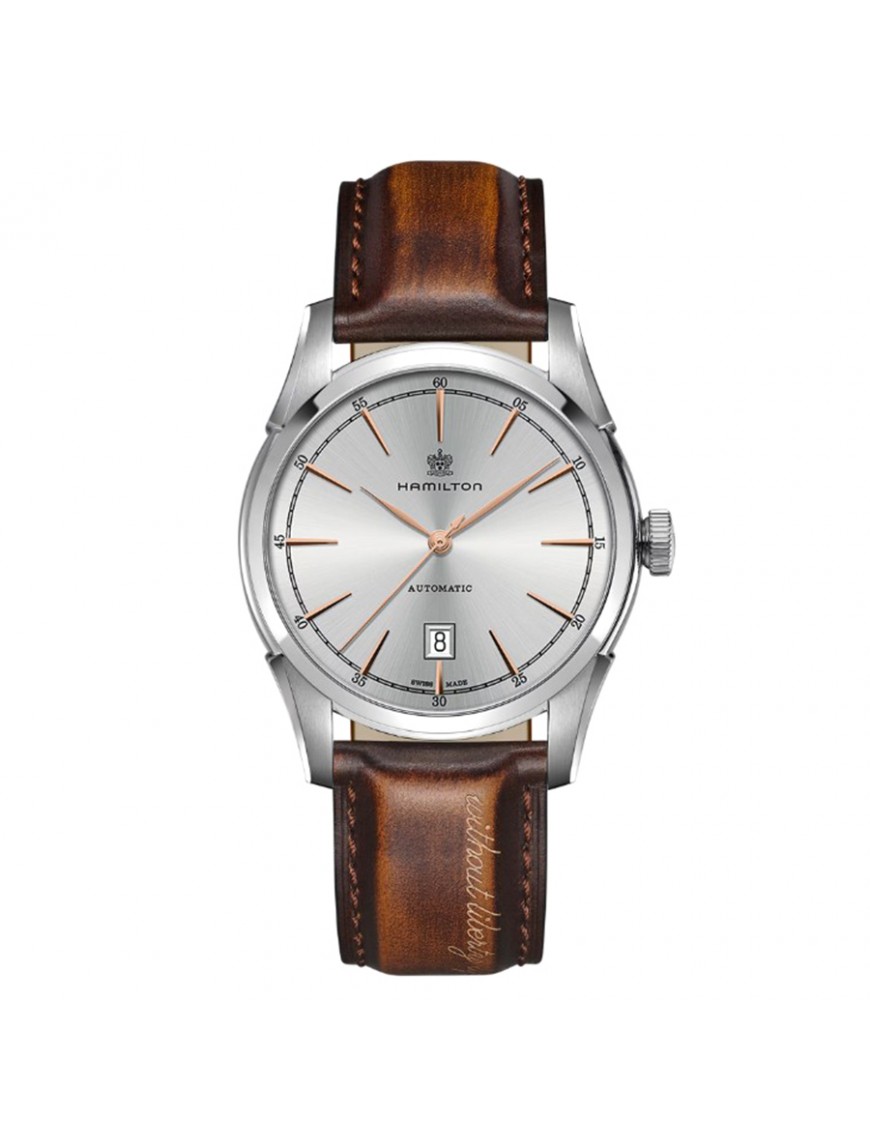Reloj Hamilton American Classic Spirit of Liberty Auto H42415551. Reloj con caja de acero inoxidable plateado, esfera plateada, correa de piel marrón con cierre desplegable. Cuenta con movimiento automático, ventana de fecha y 80 horas de reserva de marcha. Es resistente al agua hasta 5 bares. Garantía de 3 años.