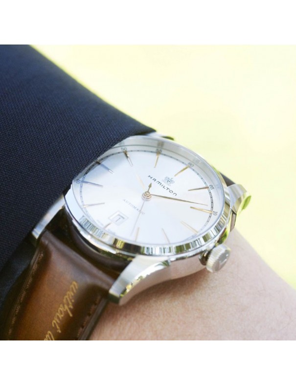 Reloj Hamilton American Classic Spirit of Liberty Auto H42415551. Reloj con caja de acero inoxidable plateado, esfera plateada, correa de piel marrón con cierre desplegable. Cuenta con movimiento automático, ventana de fecha y 80 horas de reserva de marcha. Es resistente al agua hasta 5 bares.