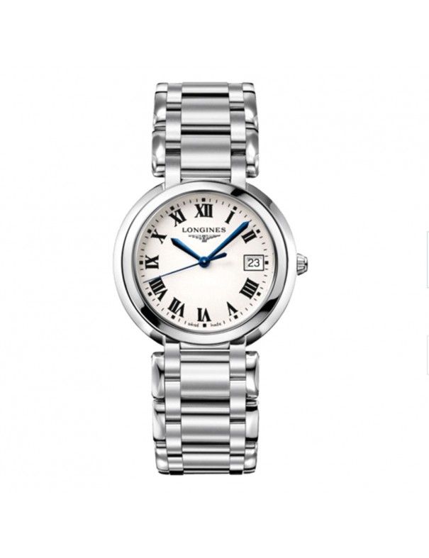 Reloj Longines Primaluna para mujer L81144716 con pulsera de acero inoxidable con triple cierre de seguridad y apertura con pulsador. La esfera mide 34 mm y está protegida por cristal zafiro irrayable antirreflejo. Su movimiento es de cuarzo con el calibre L263 y función E.O.L.. Es sumergible a 3 ATM (sólo admite leves salpicaduras). Garantía de dos años contra defectos de fabricación.