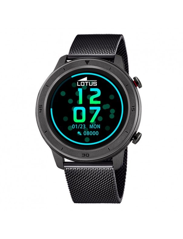 Smartwatch Lotus Hombre Smartime 50023/1. Caja de 46mm de diámetro de aleación de zinc. Cristal mineral y pulsera de acero. Función de cronómetro, contador de pasos y calorías, termómetro, presión arterial, notificación de llamadas y mensajes, control de música... Conectividad vía Bluetooth. Compatible con IOS y Android. Resistente IP67.