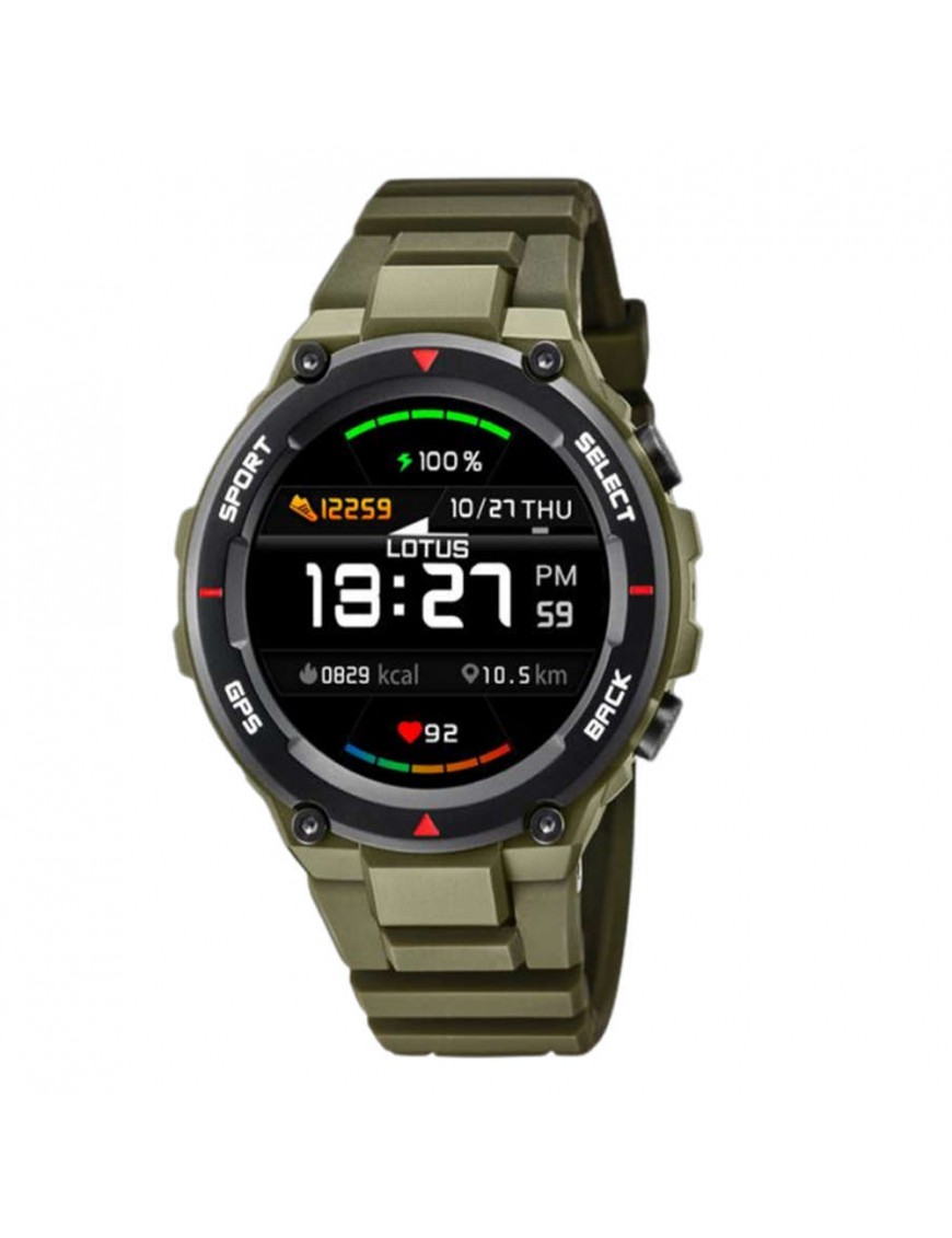 Smartwatch Lotus 50024/3. Caja de 50mm de diámetro. Pulsera de caucho. Función de alarma, calendario, cronógrafo, cuenta pasos, encuentra el teléfono, indicador de carga, llamadas desde smartwatch, monitorización del sueño, notificaciones, recordatorios, sensor de acelerómetro, presión atmosférica, altímetro, GPS.....IP67