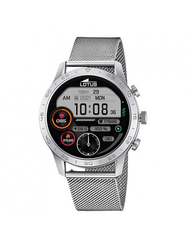 Lotus Smart Hombre 50047/1, smartwatch. Caja de aleación de zinc de 45mm de diámetro. Pulsera de acero. Función de presión arterial, saturación de oxígeno en sangre, ritmo cardíaco, temperatura, monitorización del sueño y actividad, recordatorio de hidratación y sedentarismo,alarma, control de cámara y música, modo recordatorio, calendario, activación por movimiento, varias esferas a elegir, respuesta llamadas vía Bluetooth... IP68