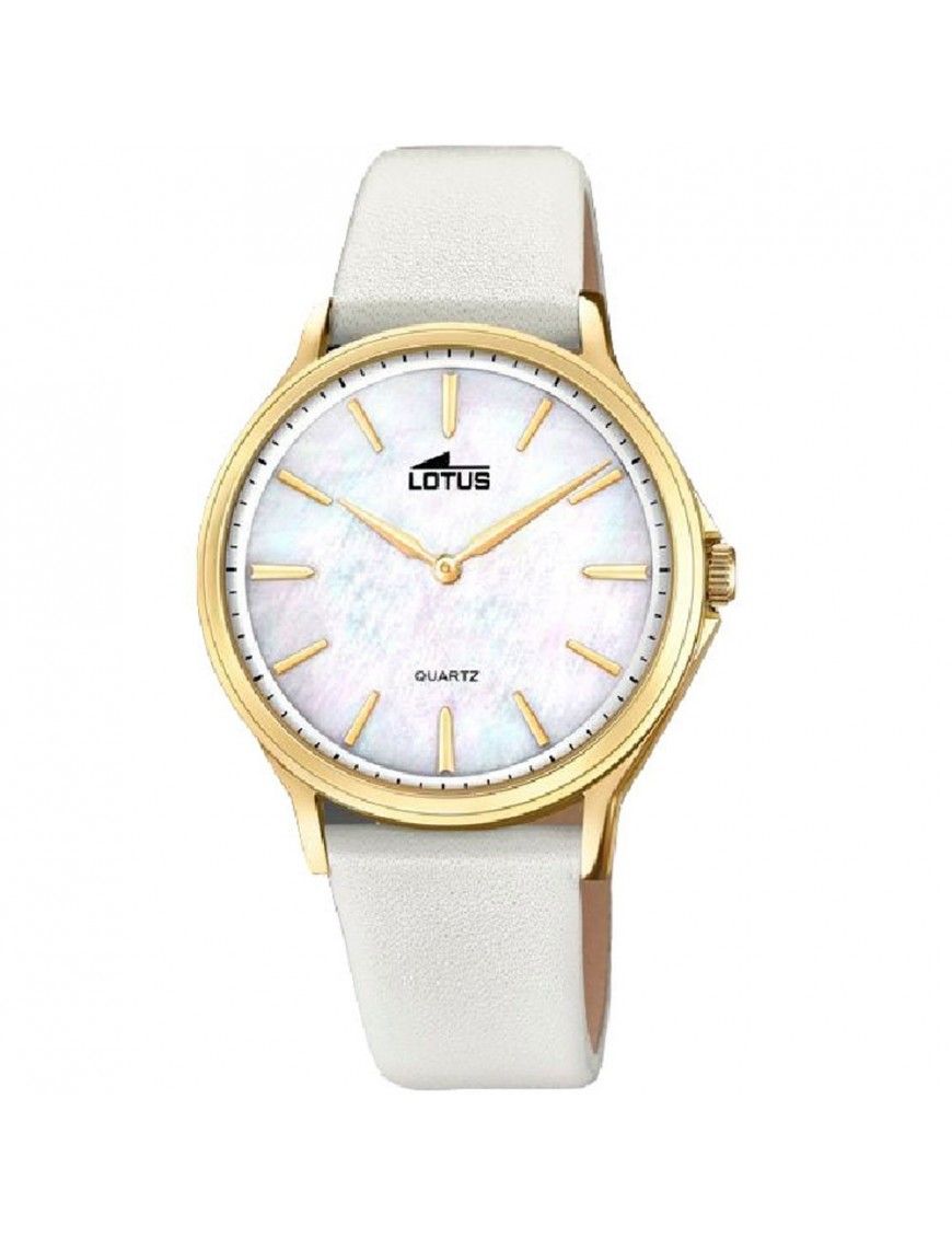 Reloj Lotus Mujer Trendy 18517/3. Colección Trendy. Es un diseño analógico de dos agujas, con movimiento de cuarzo alimentado con pila. La caja que guarda el mecanismo está realizado en acero antialérgico e inoxidable, color oro. La correa en piel auténtica color nude con cierre de hebilla. Tiene una resistencia al agua de 50 metros de profundidad.