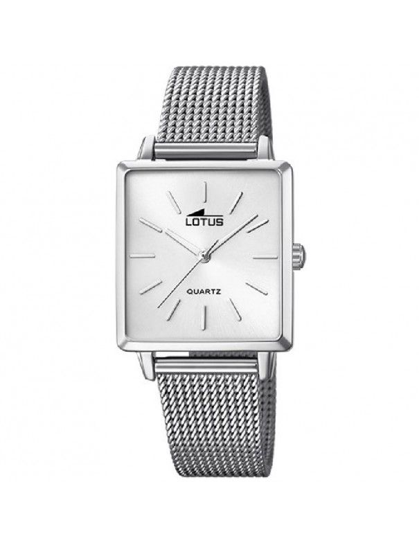 Reloj Lotus Mujer Trendy 18718/1 movimiento de cuarzo. La caja que guarda el mecanismo está realizado en acero antialérgico e inoxidable, color plateado al igual que la correa, que es tipo malla milanesa. Tiene una resistencia al agua de 50 metros de profundidad. El diámetro es de 29 milímetros.