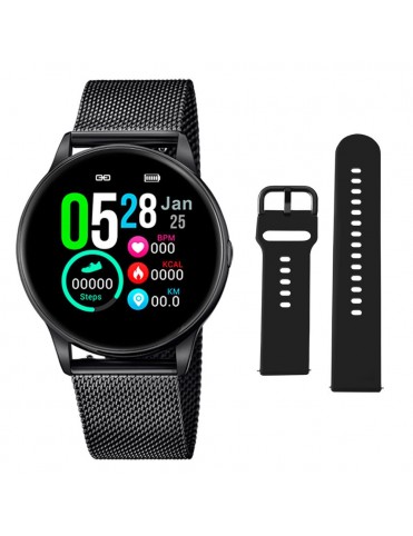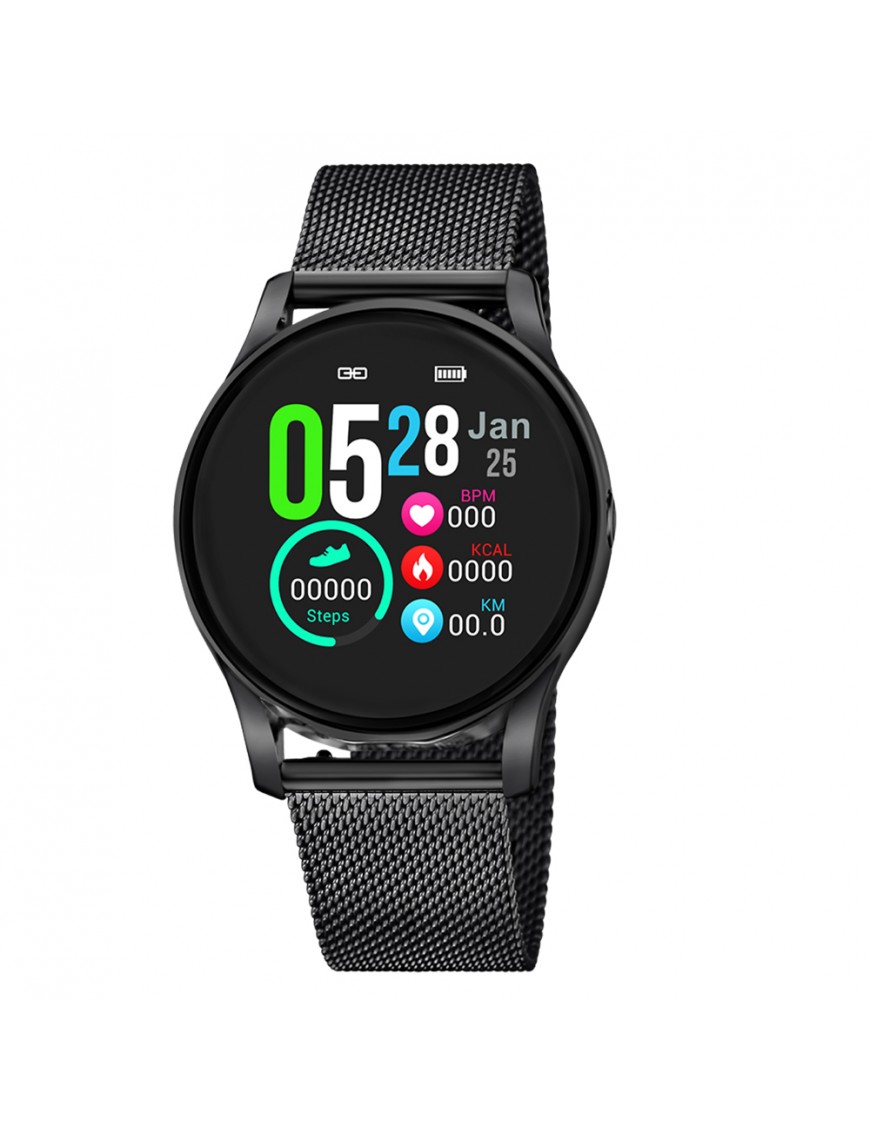 Lotus Smart Unisex 50002/A. Smartwatch con caja de aleación de zinc. Diámetro de 40mm. Pantalla táctil. Función de alarma, cronómetro, notificación de llamadas y mensajes . Monitor de ritmo cardíaco y sueño. Recordatorios de sedentarismo e hidratación, contador de pasos. Calendario, control de música y calculadora. Pulsera de acero laqueado. Impermeabilidad Ip68.