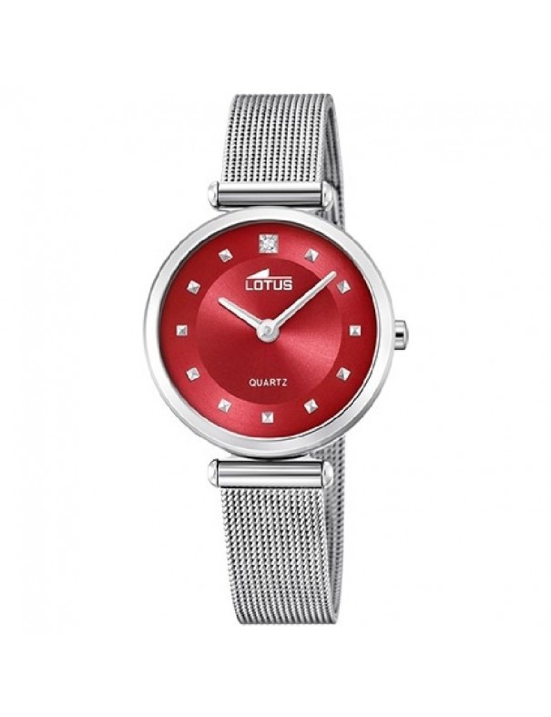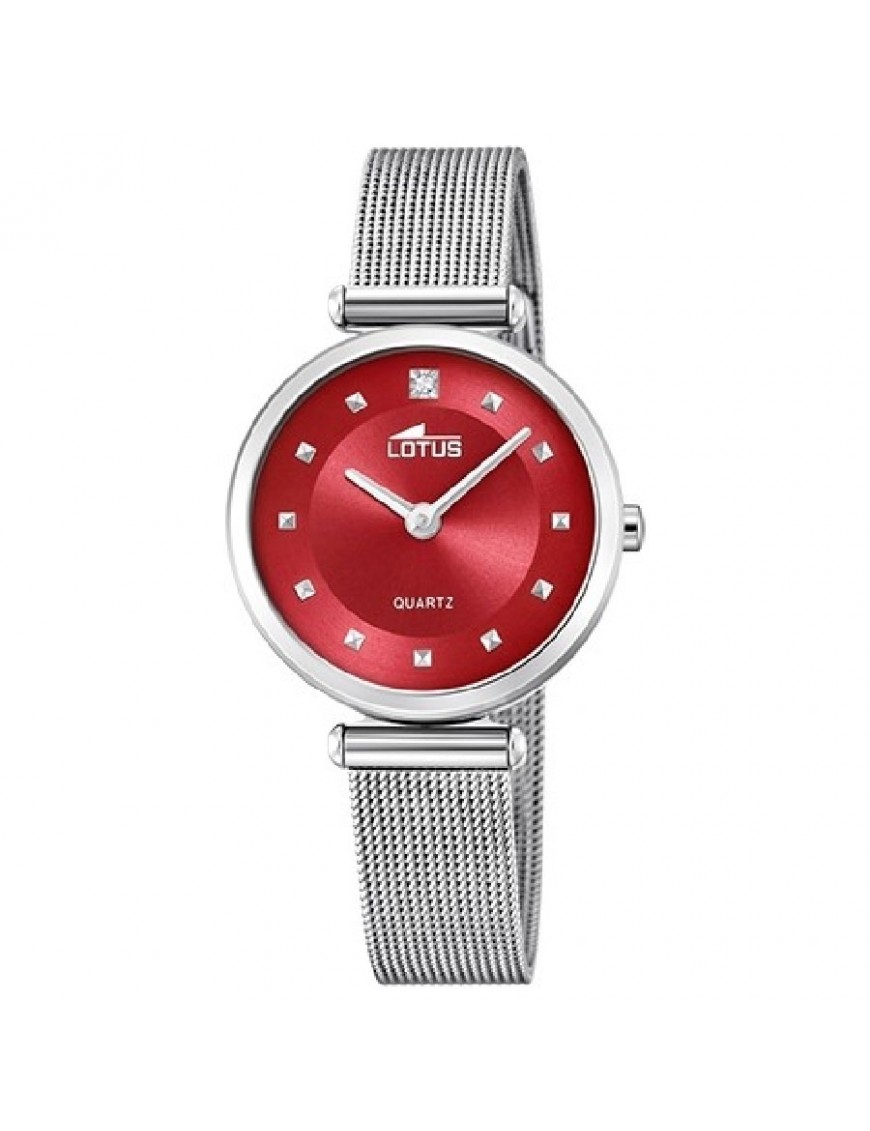 Reloj Lotus para mujer 18793/5. La esfera es de acero y mide 29 mm de diámetro. La pulsera de malla es del mismo material y lleva cierre de presión. Es sumergible a 5 ATM y permite el nado en superficie sin inmersión. Garantía de tres años.