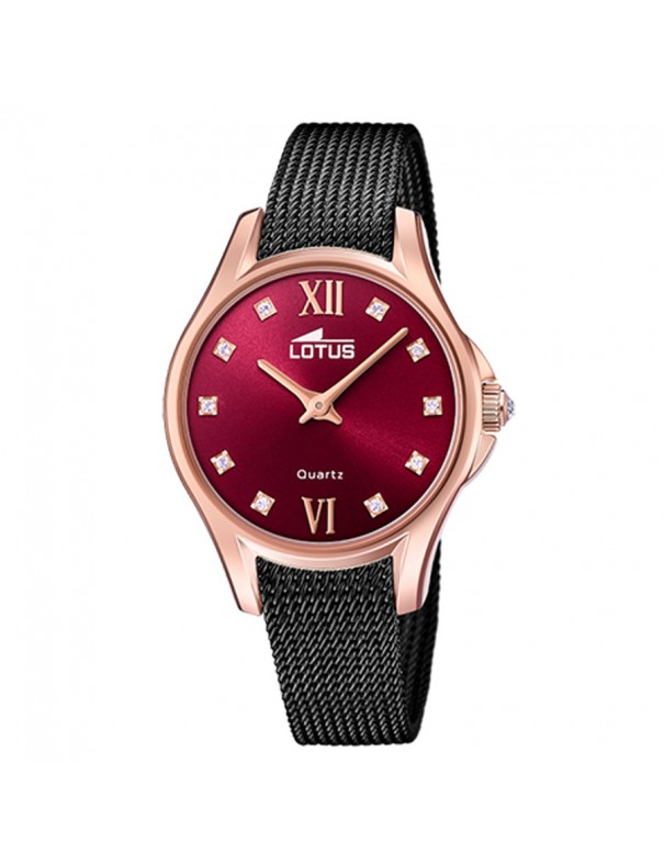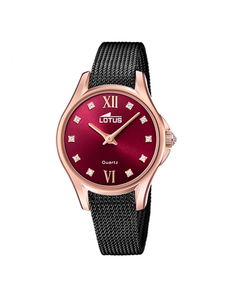 Reloj Lotus para mujer 18824/2. La esfera es de acero y mide 33 mm de diámetro. La pulsera de malla es del mismo material y lleva cierre de presión. Es sumergible a 5 ATM y permite el nado en superficie sin inmersión. Garantía de tres años.