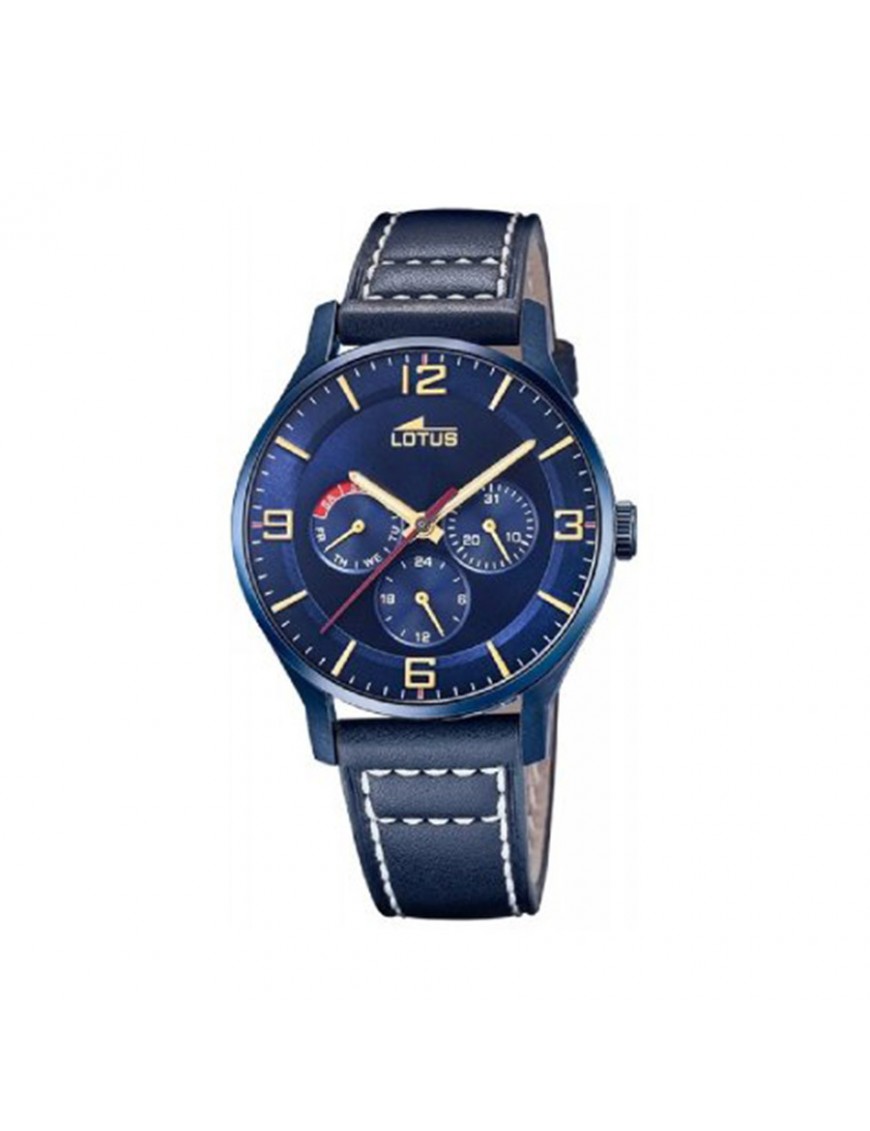 Reloj de Hombre Lotus Multifunción con Esfera Azul 18833/1. Caja de acero de 41mm de diámetro y esfera azul de cristal mineral. Correa de piel de 20mm de ancho. Sumergible a 5ATM. Garantía de 3 años.