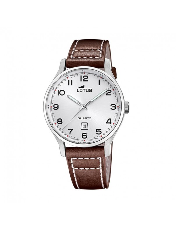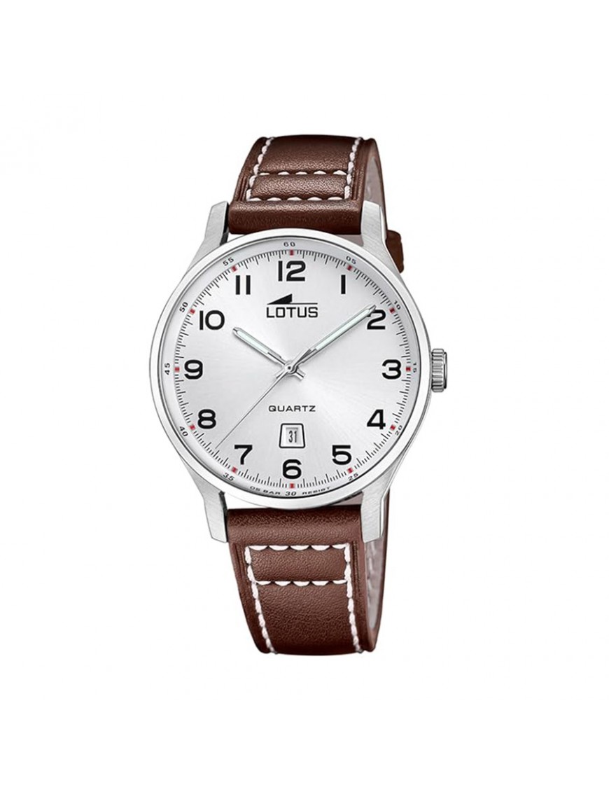 Reloj Lotus Plateado Hombre 18954/1. Cuenta con caja redonda de acero de 41mm de diámetro con esfera plateada. La correa es de piel marrón con cierre de hebilla. La esfera de cristal mineral es de color plateado y cuenta con 3 agujas. Sumergible a 5 ATM. Garantía de 3 años.