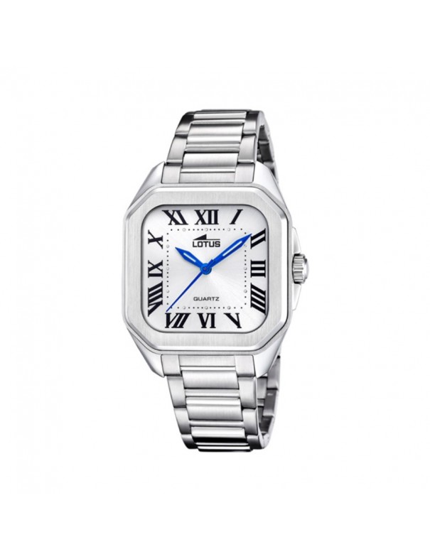 Reloj Lotus Blanco Mujer 18967/1. Caja cuadrada de acero de 35mm de diámetro con esfera blanca con cristal mineral y correa de acero inoxidable. Sumergible a 5 ATM. Garantía de 3 años.