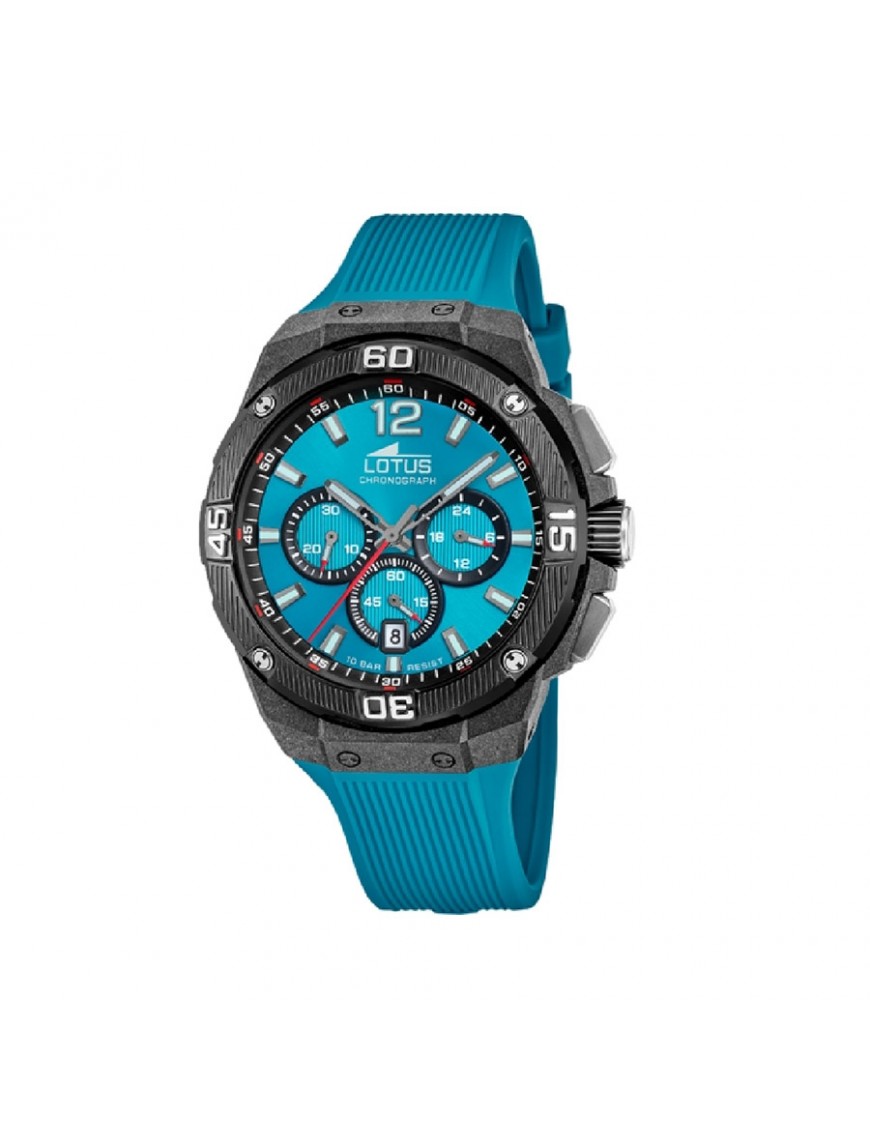 Reloj Lotus Chrono Azul Correa de Caucho Hombre 18975/6. Con caja de fibra de carbono y esfera en color azul con cristal mineral y 6 agujas. La correa es de caucho en color azul y cuenta con cierre de hebilla. Sumergible a 10 ATM. Garantía de 3 años.