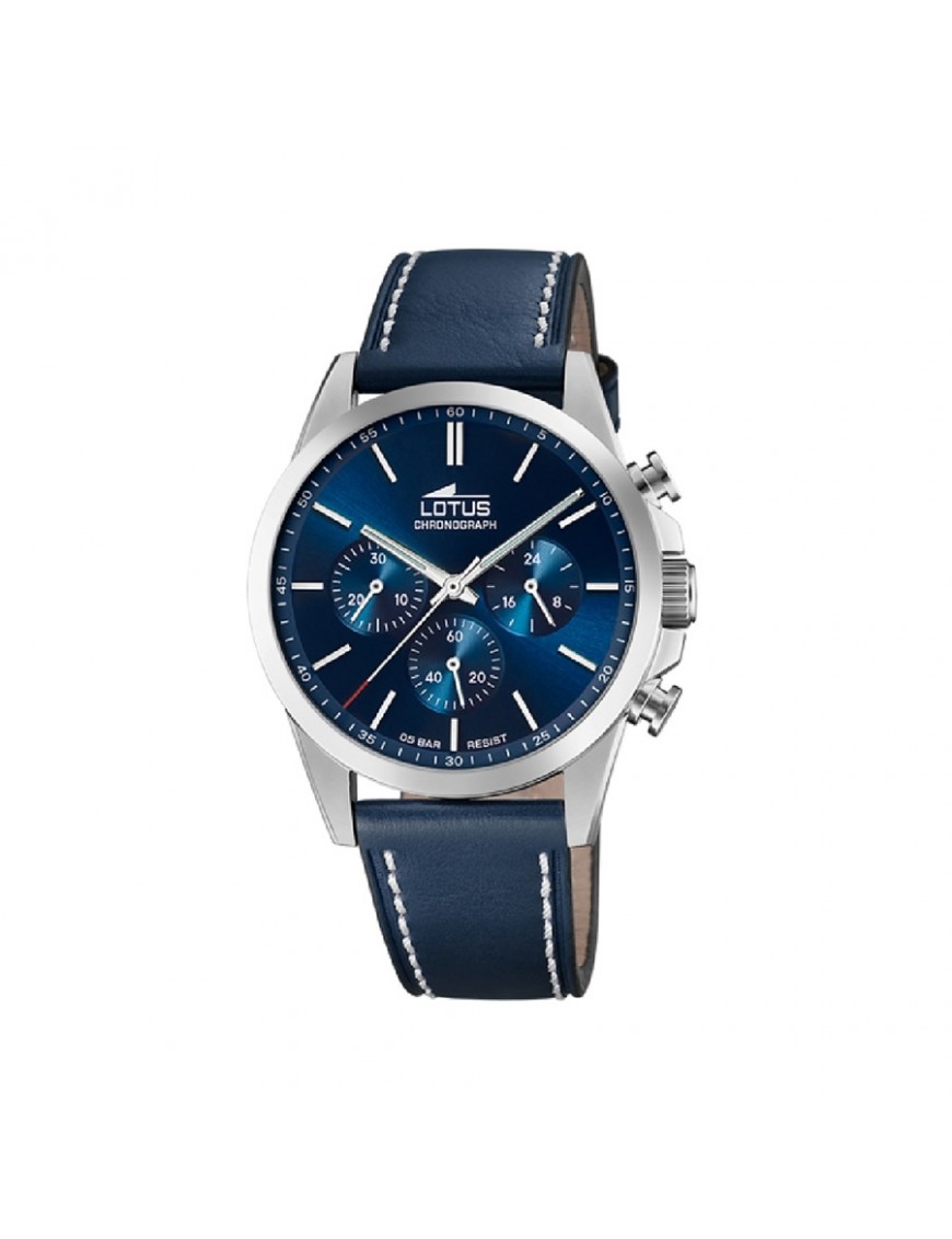 Reloj Lotus Chrono Azul Hombre 18990/2. Caja de acero de 41mm de diámetro con esfera en color azul, 6 agujas y cristal mineral. Correa de piel azul y cierre con hebilla.