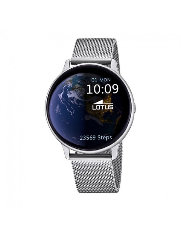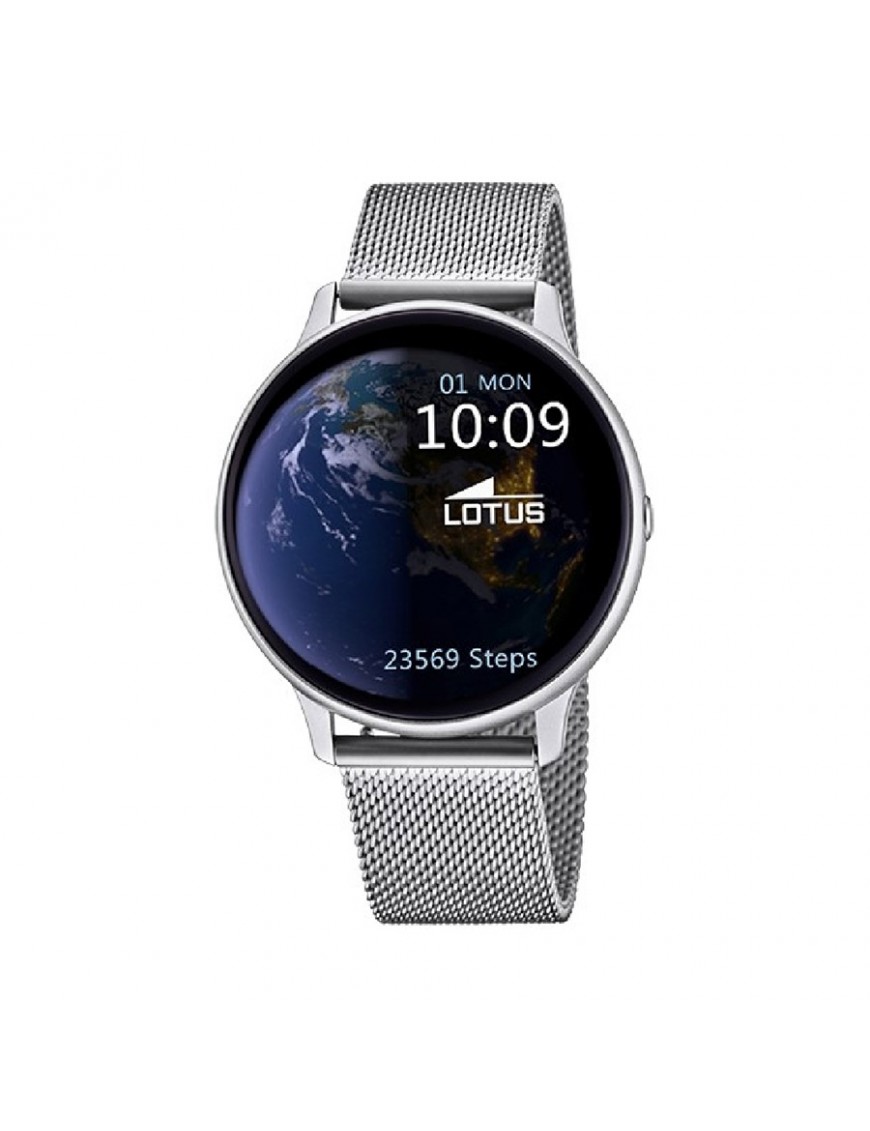 Lotus Smartwatch Collection 50014/A. Caja de aleación de zinc. Correa de acero inoxidable y una segunda de caucho. Control de la presión arterial, ritmo cardíaco, cronómetro, sueño, respiración, masaje, configuración general, teléfono, estilo de la esfera, obturador de la cámara, recordatorios y no molestar. IP65. Garantía de 3 años.