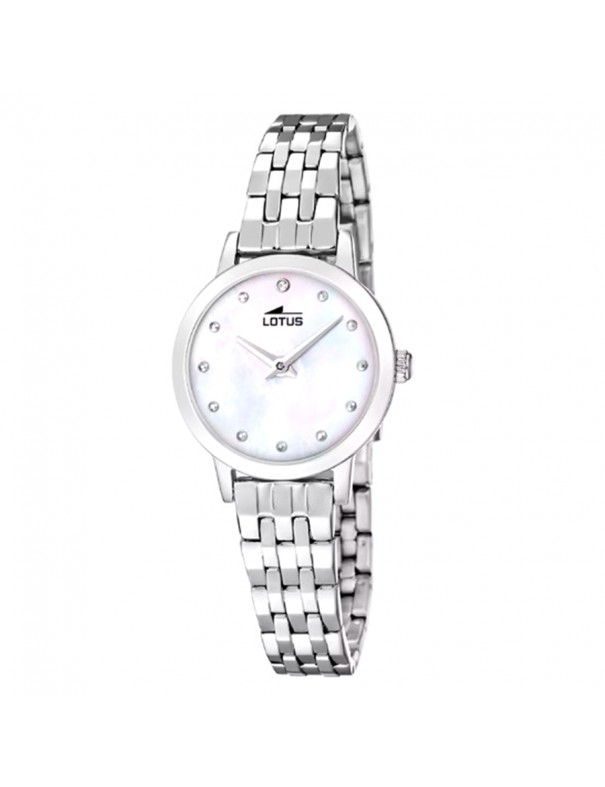 Reloj LOTUS Mujer Old Money Blanco 19030/1. Caja redonda de acero inoxidable de 26,5 mm y esfera blanca, con correa de acero inoxidable plateado y cierre desplegable. Movimiento de cuarzo, con función de horas y minutos. Cristal mineral resistente y sumergible hasta 5 ATM.