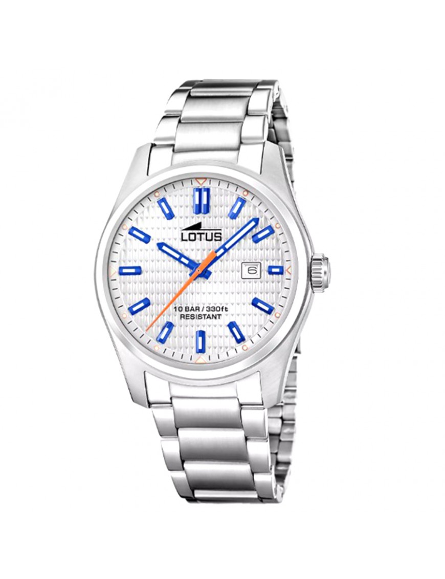 Reloj LOTUS Acero Clásico Gris Hombre 19060/3. Cuenta con caja de acero inoxidable plateado, esfera gris con índices y agujas en color azul. La correa es de acero inoxidable con cierre desplegable. Movimiento de cuarzo analógico con función de fecha, y resistencia al agua de 10 bar.