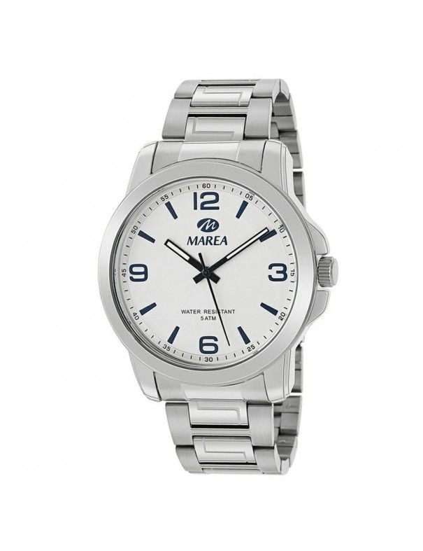 Reloj Marea Hombre B41258/3, analógico con segundero. Caja de metal de 44mm de diámetro. Pulsera de acero. Agujas e indicadores luminiscentes. Sumergible a 5ATM, por lo que es apto para ducha y baño sin inmersión.