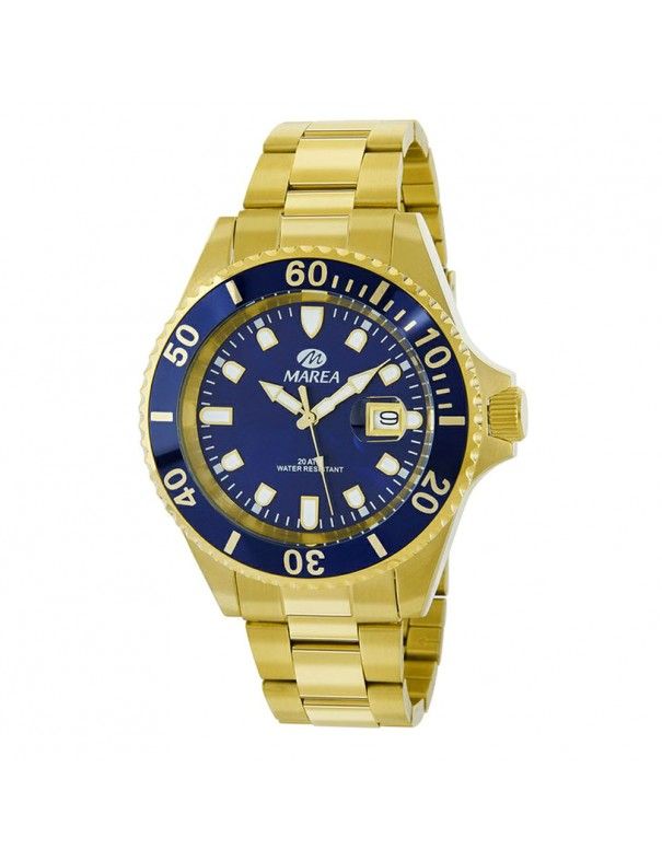 Reloj Marea Hombre B36094/20, analógico con segundero y ventana de calendario. Caja de acero en color dordo de 42mm de diámetro. Pulsera de acero. Agujas e indicadores luminiscentes. Sumergible a 20ATM, por lo que es apto para ducha y baño con inmersión.