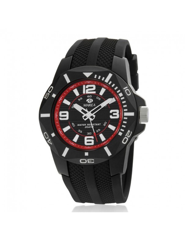 Reloj Marea para hombre B35353/1. La esfera es de plástico y mide 45 mm de diámetro. La pulsera es de silicona con hebilla. Es sumergible a 20 ATM por lo que admite buceo con botella. Garantía de tres años.