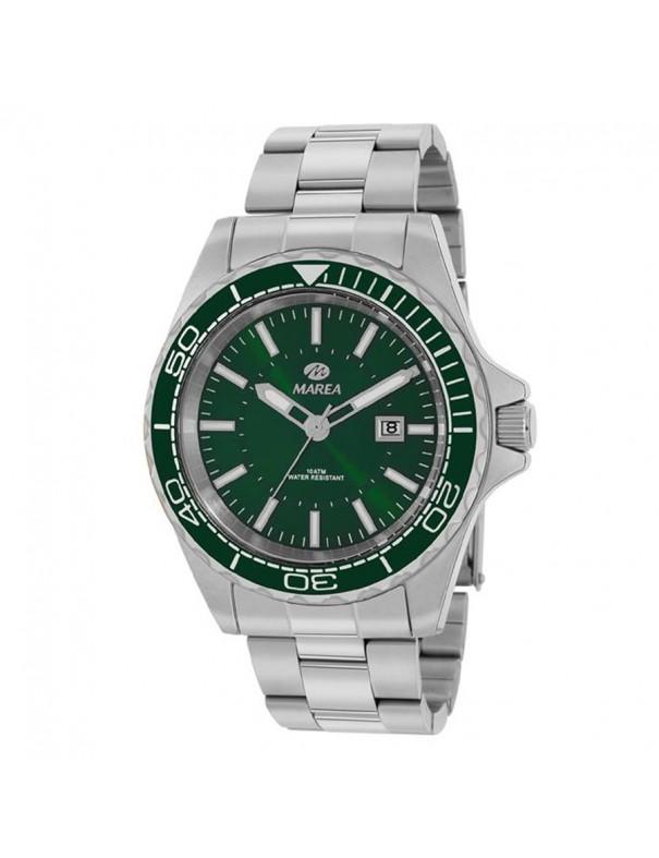 Reloj Marea para hombre B36181/3. La esfera es de acero y mide 44 mm de diámetro. La pulsera es del mismo material. Dispone de calendario. Es sumergible a 10ATM por lo que permite el buceo sin botella. Garantía de tres años.