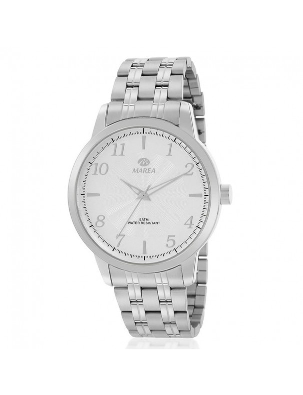 Reloj Marea para hombre B36177/1. La esfera es de acero y mide 45 mm de diámetro. La pulsera es del mismo material. Es sumergible a 5 ATM por lo que permite el nado en superficie sin inmersión. Garantía de tres años.