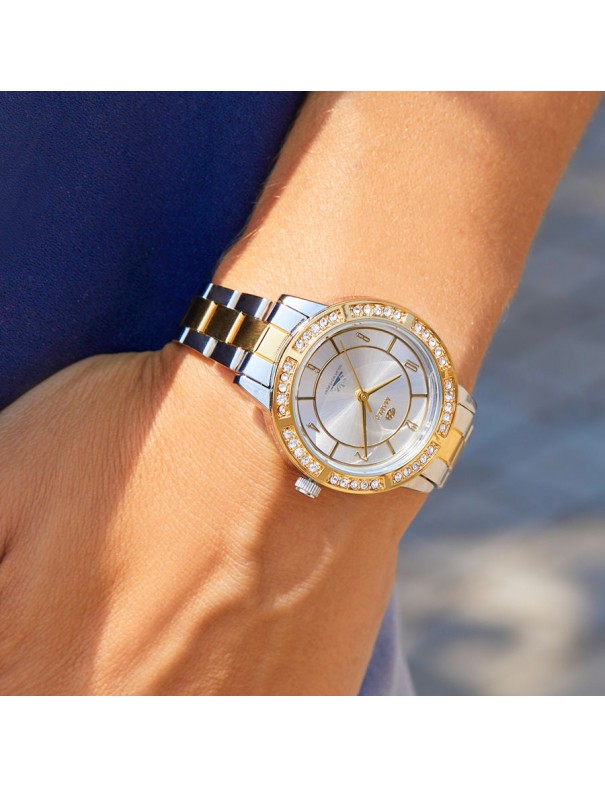 Reloj Marea Solar para mujer B41350/4. La caja es de metal con cristal mineral y mide 34 mm de diámetro. La pulsera es de acero. Se alimenta mediante energía solar. Es sumergible a 5ATM y tiene tres años de garantía.