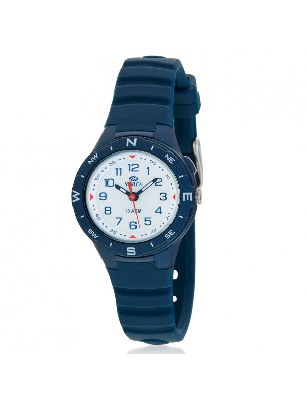 Reloj Marea Cadete B25158/2, analógico de tres agujas. Caja de plástico. Diámetro de 29mm. Pulsera de silicona. Esfera iluminada. Sumergible a 10ATM, por lo que es apto para ducha y baño con inmersión.