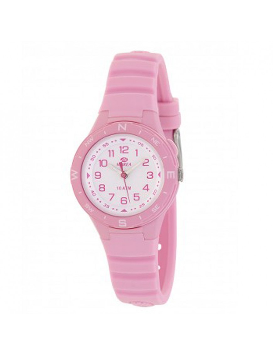 Reloj Marea Cadete B25158/6, analógico de tres agjujas. Caja de plástico de 29mm de diámetro. Pulsera de silicona. Agujas luminiscentes. Esfera con iluminación led. Sumergible a 10ATM, por lo que es apto para ducha y baño son inmersión.