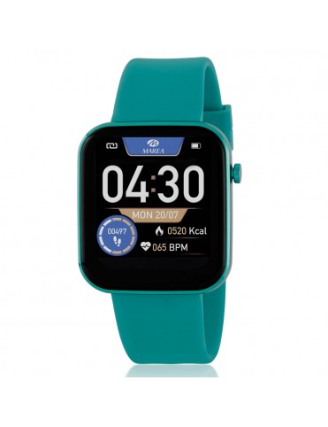Reloj Marea Smart B57009/2. Caja de plástico de 38X40mm. Pantalla Full Touch de 1,69 pulgadas. Pulsera de caucho. Función de cronómetro, alarma, recordatorio de sedentarismo, hidratación, contador de pasos, contador de calorías consumidas, monitorización del sueño, frecuencia cardíaca, medición de presión arterial y oxígeno en sangre, notificación de llamadas y mensajes, control remoto de música y fotos, tiempo meteorológico, personalización de pantalla...Batería de 220mAh. Protección IP67. Compatible con dispositivos Android 4.4 o superior e IOS 8.2 o superior.