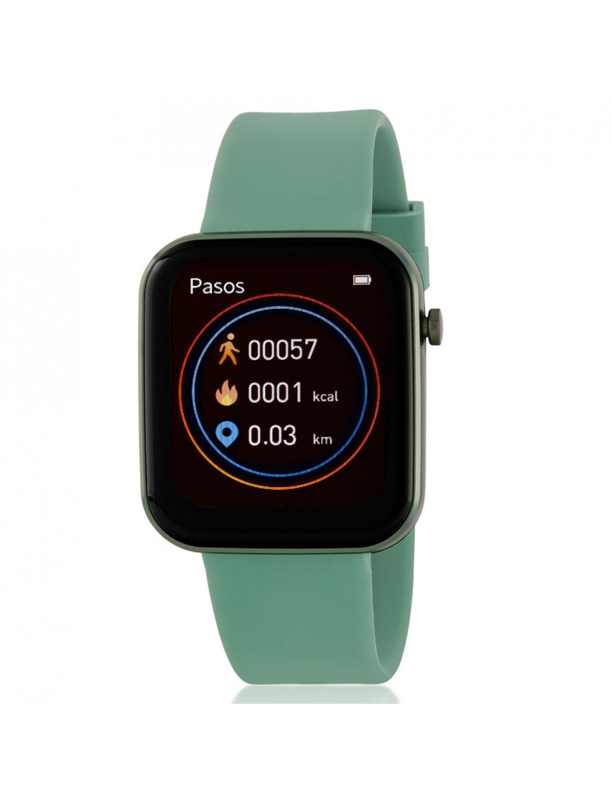 Reloj Marea Smart B57009/4. Caja de plástico de 38X40mm. Pantalla Full Touch de 1,69 pulgadas. Pulsera de caucho. Función de cronómetro, alarma, recordatorio de sedentarismo, hidratación, contador de pasos, contador de calorías consumidas, monitorización del sueño, frecuencia cardíaca, medición de presión arterial y oxígeno en sangre, notificación de llamadas y mensajes, control remoto de música y fotos, tiempo meteorológico, personalización de pantalla...Batería de 220mAh. Protección IP67. Compatible con dispositivos Android 4.4 o superior e IOS 8.2 o superior.