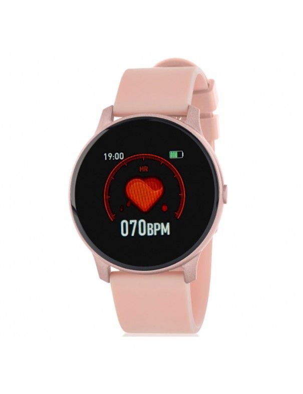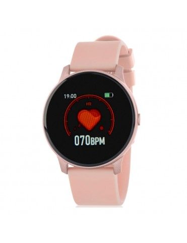 Marea Smart B59006/3, pantalla de 1,3 pulgadas y pulsera de caucho rosa. Caja de plástico con un tamaño de 44,5mm. Batería de 140mAh. Entre sus funciones se encuentran: Monitorización del sueño, Cuenta pasos, Distancia Recorrida, Calorías consumidas, Medición de saturación de oxígeno en sangre, Presión arterial, Control Remoto de música y cámara, Alarma, Cronómetro ... Impermeabilidad de IP67, por lo que puede ser sumergido en agua hasta un metro durante media hora. Garantía de dos años contra defectos de fabricación.