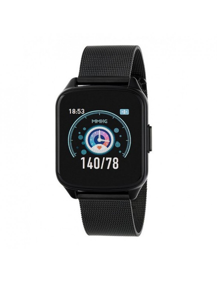 Reloj Marea Smart B59007/5. Caja de plástico de 38x44mm. Pantalla Full Touch de 1,69 pulgadas. Pulsera de caucho. Función de cronómetro, alarma, recordatorio de sedentarismo, hidratación, contador de pasos, contador de calorías consumidas, monitorización del sueño, frecuencia cardíaca, medición de presión arterial y oxígeno en sangre, electrocardiograma, notificación de llamadas y mensajes,control remoto de música y fotos, tiempo meteorológico. Protección IP67. Batería de 220mAh.