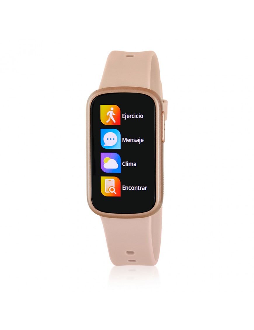Pulsera de Actividad Marea Rosa B57015/4. Smartband de estilo deportivo equipada con una amplia pantalla táctil de 1,47 pulgadas que facilita la interacción con todas sus funciones digitales, ideal para acompañarte tanto en el día a día como durante tus entrenamientos. Su batería de 155 mAh ofrece una autonomía de hasta 3 días según el uso, y su diseño con caja de plástico en negro y correa de silicona rosa palo aporta confort y versatilidad. Esta pulsera inteligente monitoriza tu actividad física con funciones como contador de pasos, calorías y distancia recorrida, seguimiento de sueño, frecuencia cardíaca y presión sanguínea, además de ofrecer modos deportivos, recordatorio sedentario y notificaciones de llamadas, mensajes y redes sociales, junto con utilidades como alarmas, control remoto de cámara y anti-pérdida del dispositivo o del móvil.