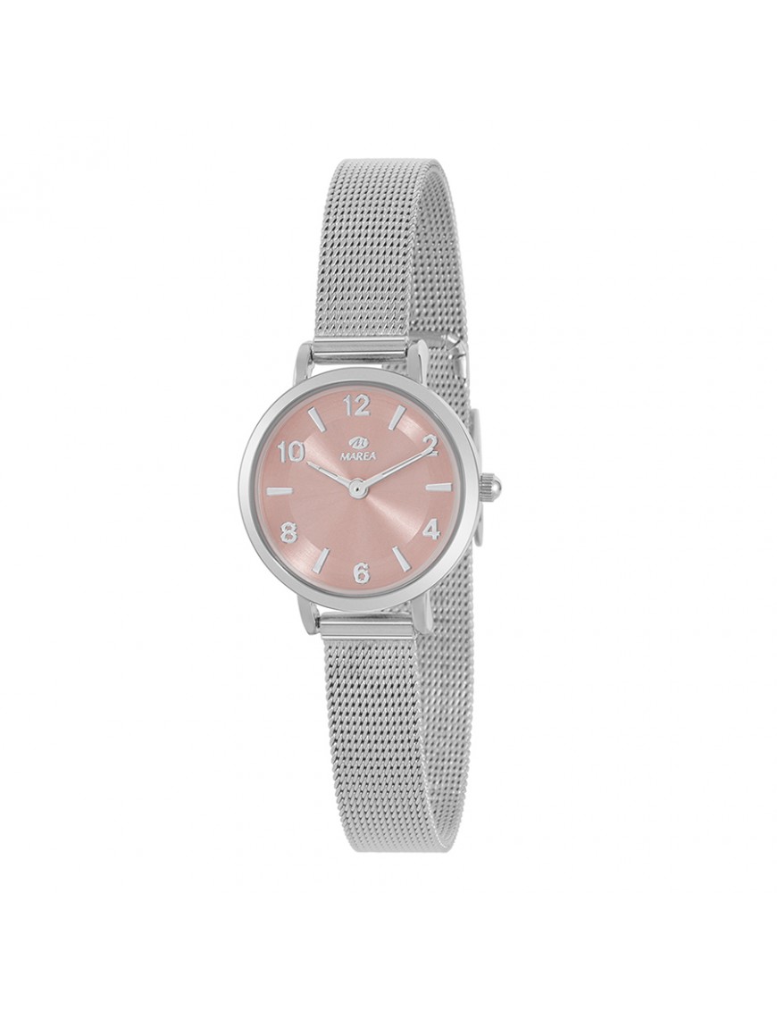 Reloj Marea Mujer B41403/2. Elegante reloj analógico diseñado para la mujer moderna que busca un accesorio sofisticado y versátil, con una caja de acero inoxidable plateado de perfil delgado y una cómoda correa de malla milanesa que se ajusta fácilmente a la muñeca, una esfera en tono nude o rosa suave que aporta un toque de feminidad y estilo, movimiento de cuarzo de tres agujas que garantiza precisión y fiabilidad diaria, cristal mineral resistente a arañazos y una resistencia al agua de 3 ATM que protege frente a salpicaduras. Garantía de 3 años.