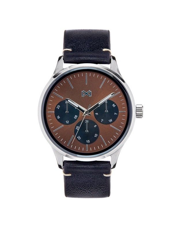 Reloj Mark Maddox Hombre Multifunción HC7100-47. Es un reloj diseñado por la marca Mark Maddox, para hombre analógico multifunción, con movimiento de cuarzo alimentado con pila. La caja es de acero color plata que contiene el mecanismo mide 41 milímetros, es sumergible a 30 metros 3 ATM, que le protege sólo de pequeñas salpicaduras de agua. Un cristal mineral protege a la esfera, la cual es de color marrón. Los indicadores de la hora son números arábigos. Mientras, la correa es de auténtica piel negra. Los relojes Mark Maddox incluyen una garantía de 2 años contra cualquier defecto de fabricación.