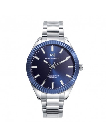 Reloj Mark Maddox Hombre Multifunción HC7100-47. Es un reloj diseñado por la marca Mark Maddox, para hombre analógico multifunción, con movimiento de cuarzo alimentado con pila. La caja es de acero color plata que contiene el mecanismo mide 41 milímetros, es sumergible a 30 metros 3 ATM,