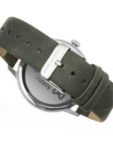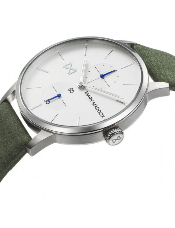 Reloj Mark Maddox multifunción Hombre HC2009-07. NORTHERN. Es un modelo analógico de tres agujas con movimiento de cuarzo alimentado con pila. La caja es de acero en color plateada. La correa en piel sintética de color verde. El tamaño de la caja es de 41 milímetros y es sumergible a 50 metros de profundidad. Un cristal mineral cubre la esfera la cual es de color blanca.