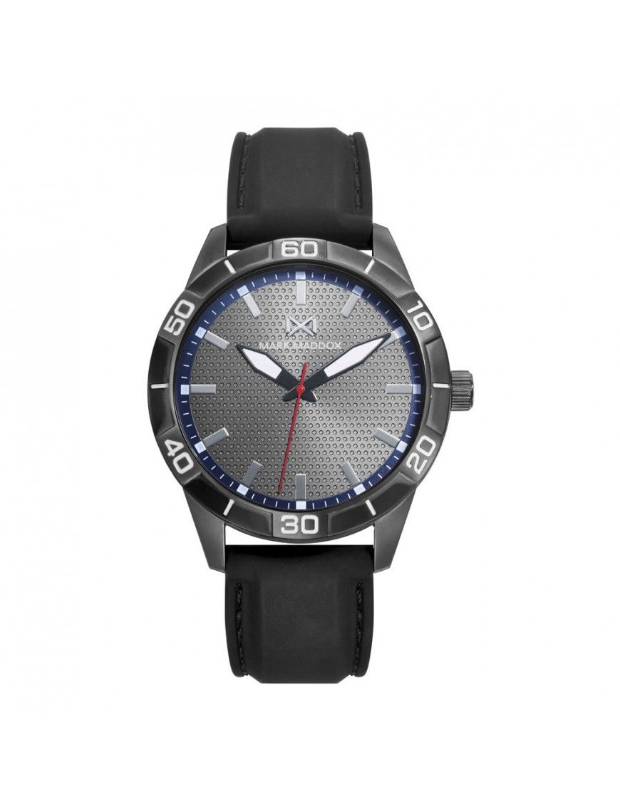 Reloj Mark Maddox Hombre HC7142-17 Mission, analógico con segundero. Agujas luminiscentes y esfera de 45mm de diámetro. Pulsera de caucho en color negro. Cristal mineral. Bisel decorado con minutos, que junto a la caja se presenta en color gris mate. Sumergible a 5ATM, por lo que es apto para ducha y baño sin inmersión. Garantía de dos años contra defectos de fabricación.