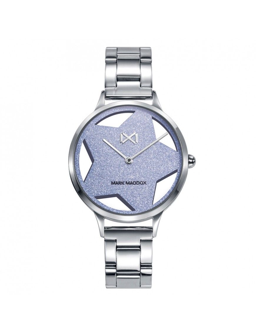 Reloj Mark Maddox Mujer Tooting MM7149-30, analógico sin segundero. Esfera de 35mm de diámetro con forma de estrella en su interior. Pulsera milanesa de acero. Cristal mineral.