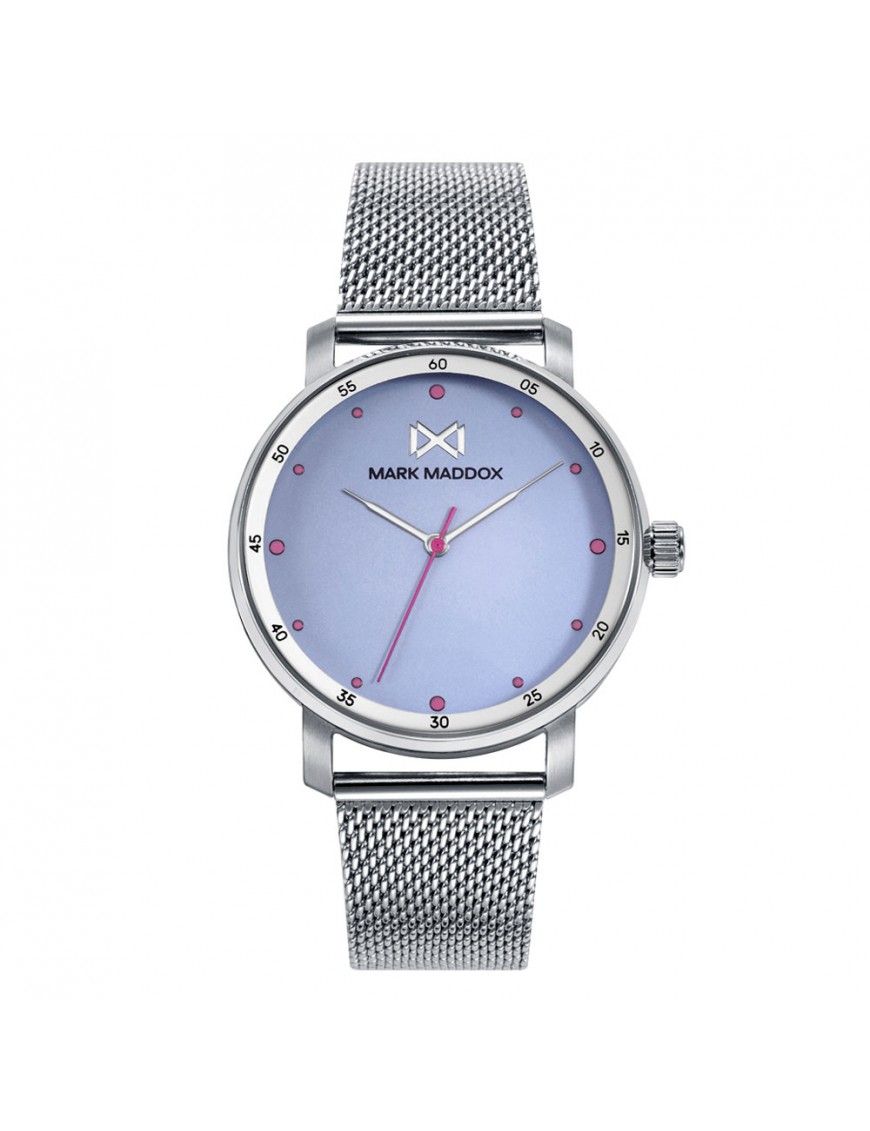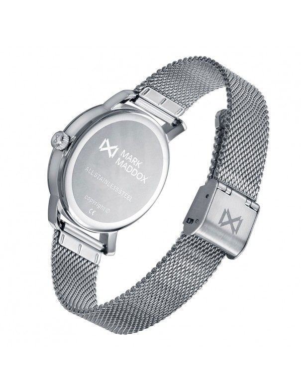 Reloj Mark Maddox Mujer Midtown MM7155-97, analógico sin segundero. Esfera de 35mm de diámetro. Pulsera milanesa de acero. Cristal mineral. Sumergible a 5ATM, por lo que es apto para ducha y baño sin inmersión.