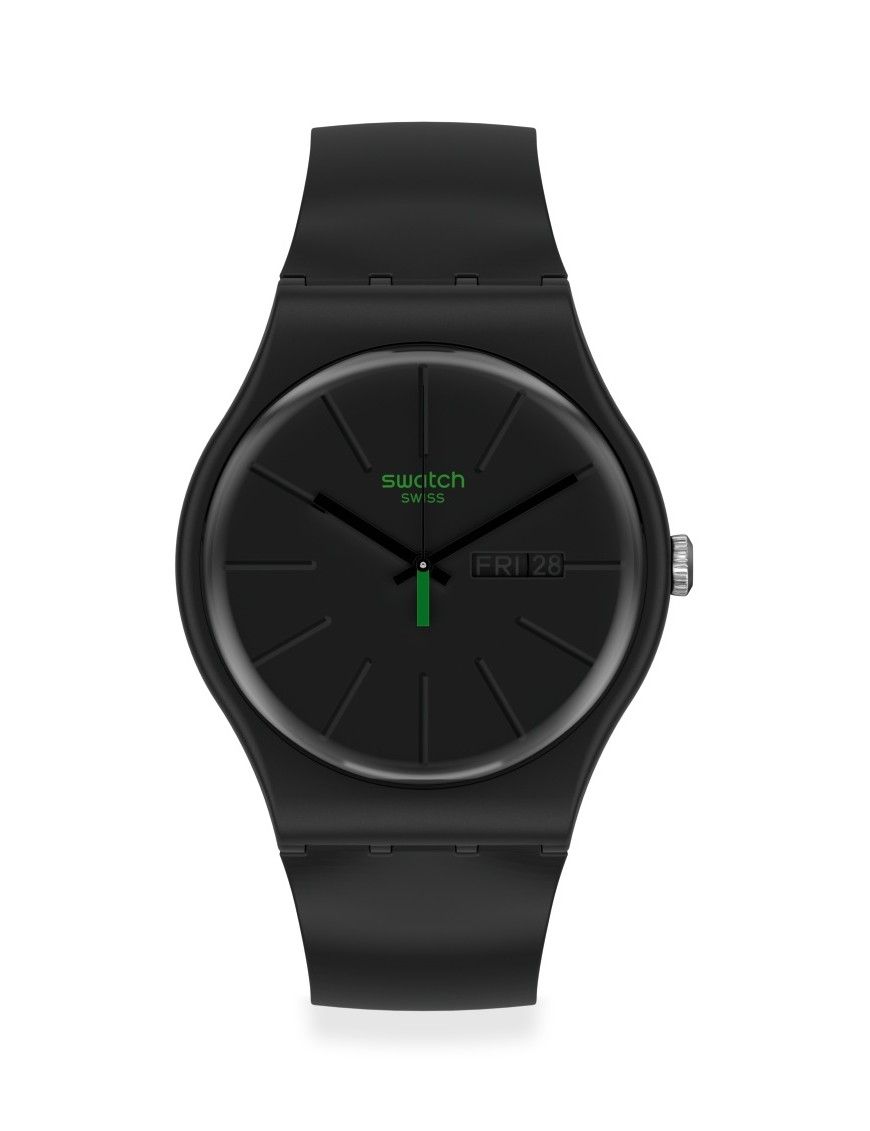 Reloj Swatch Neuzeit SO29B700 Unisex, caja de plástico 41mm de diámetro y pulsera de caucho gris. Reloj analógico con calendario y día de la semana. Movimiento de cuarzo. Sumergible a 3ATM. Garantía de dos años contra defectos de fabricación.