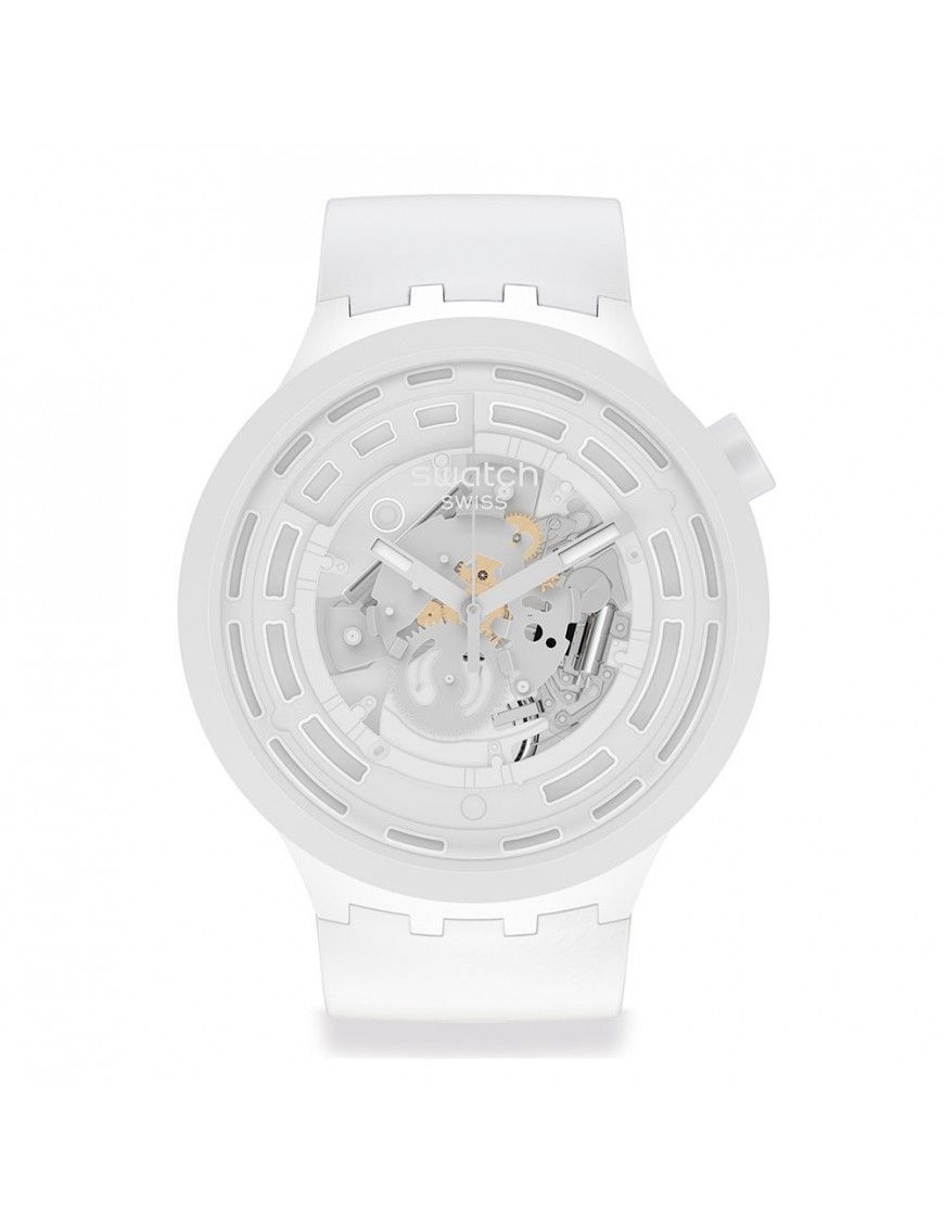 Reloj Swatch Bioceramic C-White SB03W100 (XL), analógico con segundero. Caja Bioceramic de 47mm de diámetro. Cierre de aluminio. Pulsera de color blanco de orígen biológico.