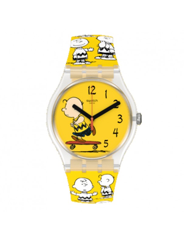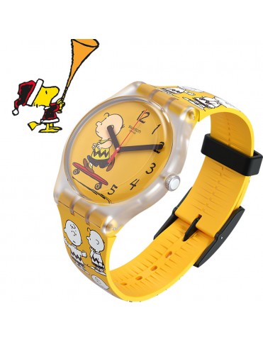 Reloj Swatch Pow Pow SO29Z101, analógico con segundero. Caja de material con origen biológico de 41mm de diámetro. Pulsera de silicona. Cierre de plástico. Sumergible a 3ATM, por lo que sólo soporta pequeñas salpicaduras.