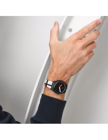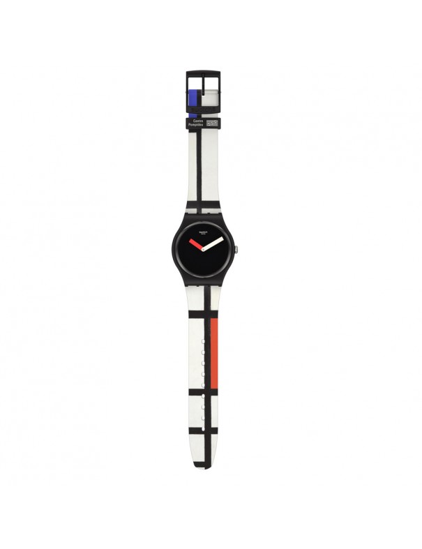 Reloj Swatch Red Blue And White SUOZ344 (L) Centre Pompidou, analógico de dos agujas. Caja de 41mm de diámetro. Caja de plástico. Pulsera de silicona. Sumergible a 3ATM, por lo que sólo soporta pequeñas salpicaduras.