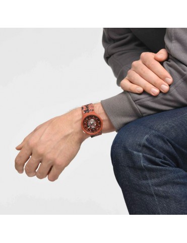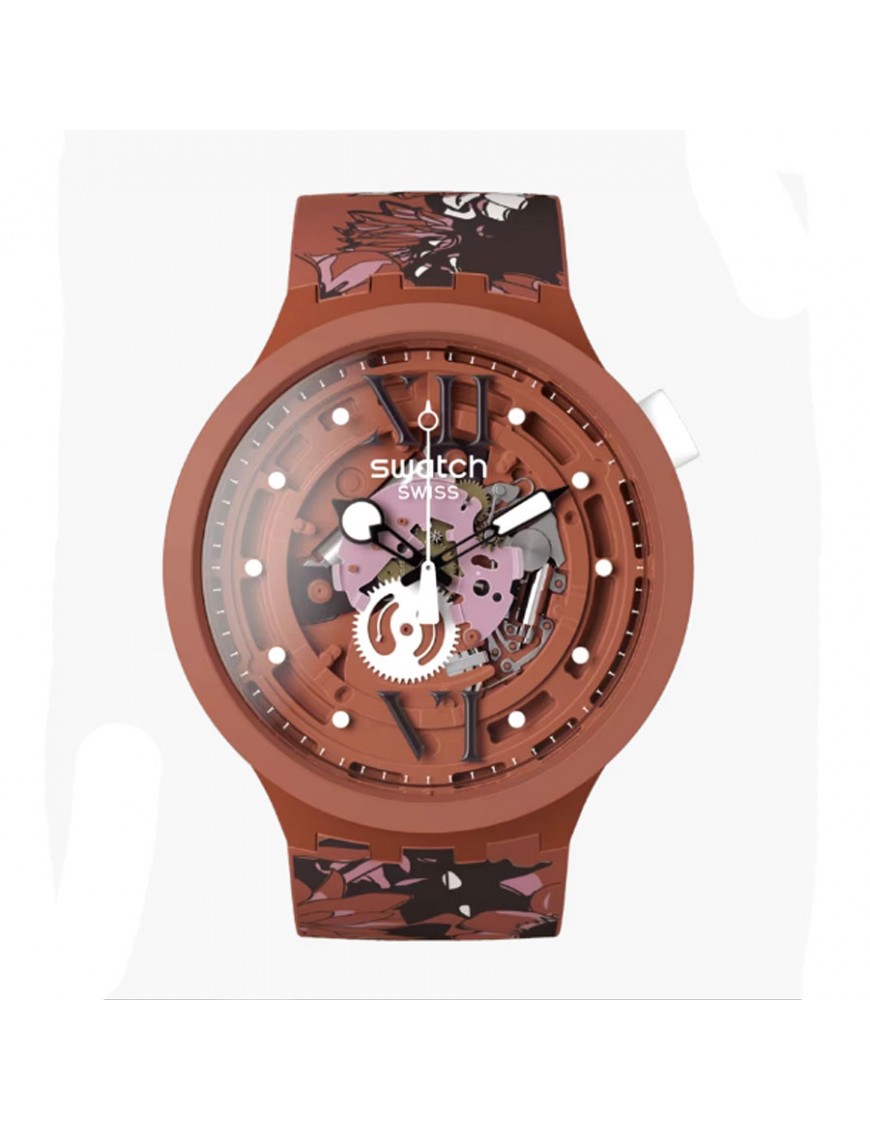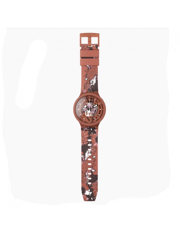 Reloj Swatch Camoflower Cotton SB05C100 unisex Big Bold. La esfera mide 47 mm de diámetro y es de material biocerámico. La pulsera es de silicona con cierre de hebilla de aluminio. No es sumergible (3ATM) y sólo admite salpicaduras. Garantía de tres años.