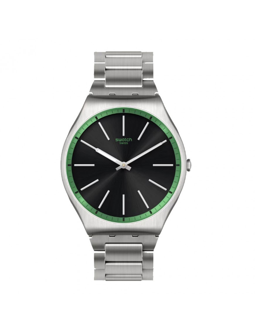 Reloj Swatch Green Graphite SS07S128G unisex. La esfera es de acero inoxidable y mide 42 mm de diámetro. La hebilla es desplegable con pulsador y es de acero como la pulsera. No es sumergible (3ATM) y sólo admite leves salpicaduras. Garantía de tres años.