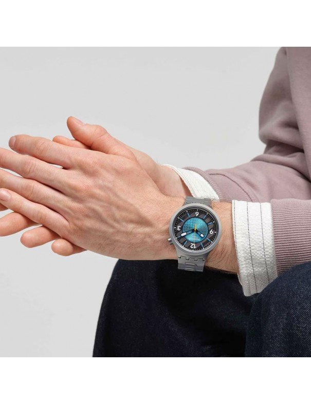 Reloj Swatch Frostbloom para hombre SB07S116G. La caja es de acero y mide 47 mm de diámetro. La pulsera es del mismo material con cierre mariposa. Pertenece a la colección Big Bold. No es sumergible (3ATM) y cuenta con tres años de garantía.