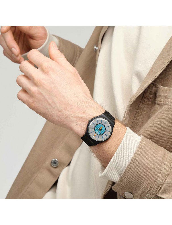 Reloj Swatch Good To Grop para hombre SO32B119. la caja es de material biocerámico y mide 41 mm de diámetro. La pulsera es de silicona con hebilla biocerámica. No es sumergible (3ATM) y tiene tres años de garantía. Colección Power of Nature.