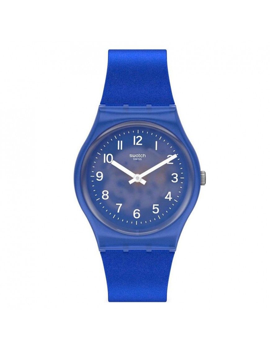 Reloj Swatch Blurry Blue GL124 (M), analógico sin segundero. Esfera de 34mm de diámetro y agujas blancas. Pulsera de silicona color azul. Sumergible a 3ATM, por lo que sólo soporta pequeñas salpicaduras.