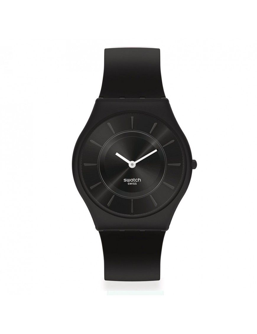 Reloj Swatch Skin Liquirizia SS08B100 (M), analógico sin segundero. Caja de origen biológico de 34mm de diámetro. Pulsera de silicona en color negro. Sumergible a 3ATM, por lo que sólo soporta pequeñas salpicaduras.