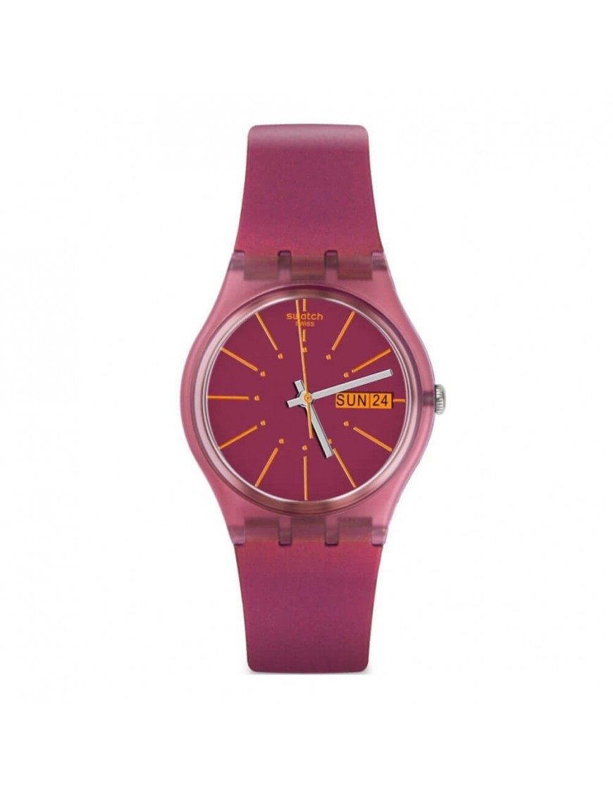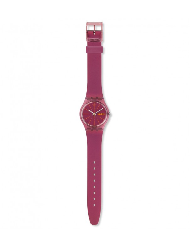 Reloj Swatch Sneaky Peaky GP701 (M), analógico con ventana de calendario. Caja de 34mm de diámetro de plástico. Pulsera de silicona. Sumergible a 3ATM, por lo que sólo soporta pequeñas salpicaduras.
